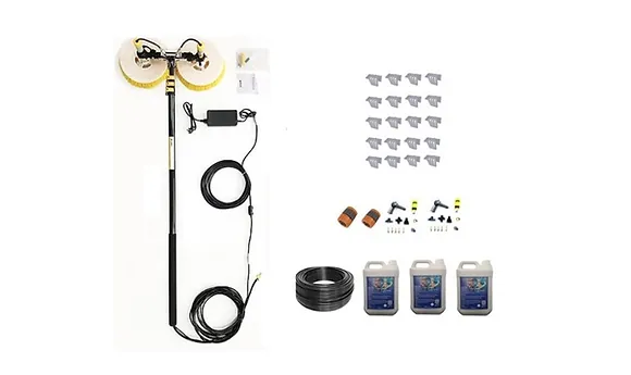 O COMBO de limpeza de painéis solares possui todas as ferramentas que você precisa para alcançar e limpar até mesmo os painéis de acesso mais difícil.